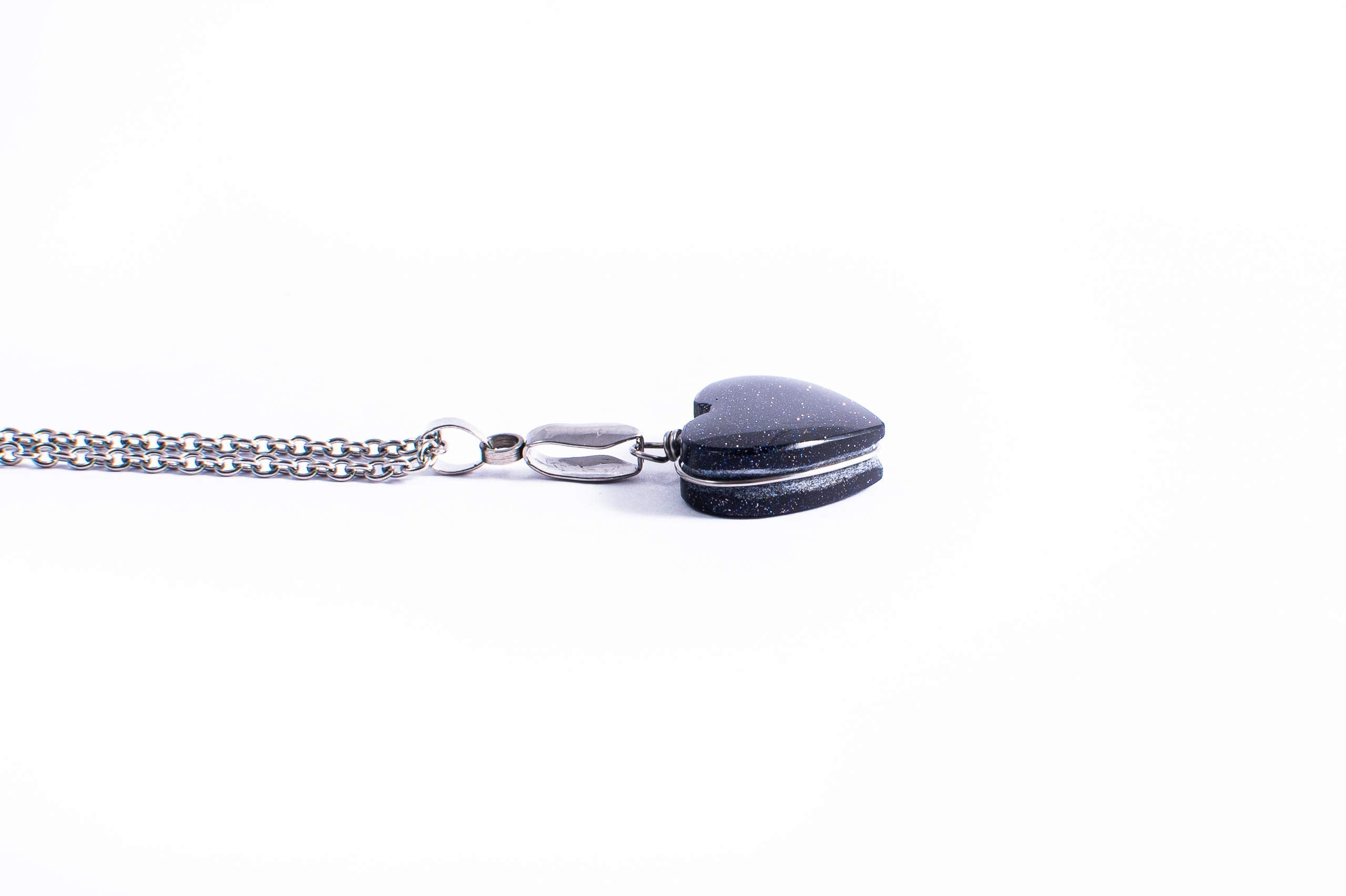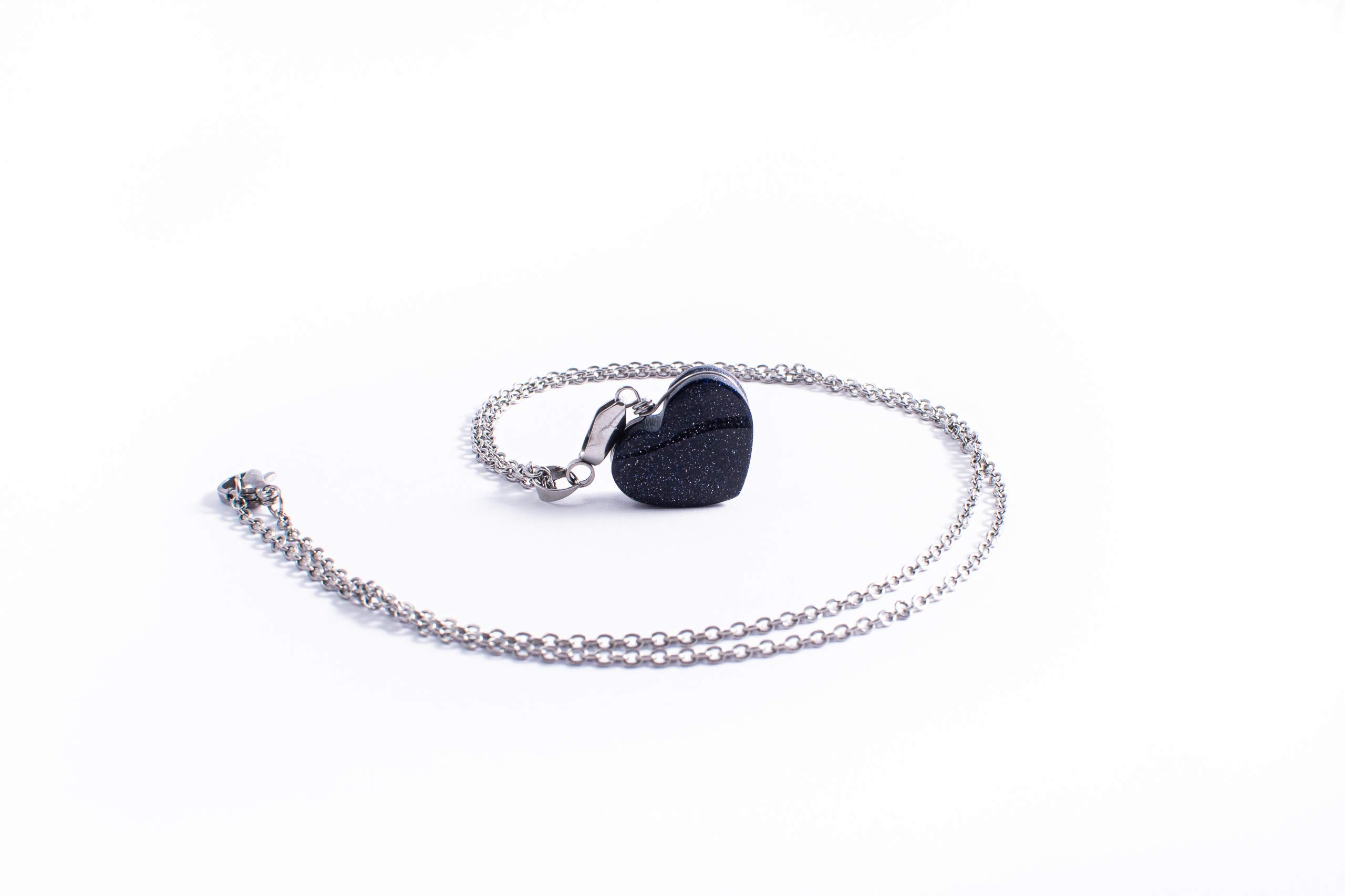 Detalles: Hermoso collar de Venturina Azul Corazón posee propiedades muy beneficiosas, tanto espirituales como energéticas. Es una piedra energética que promueve el sentimiento de bienestar, también conocida como noche de estrellas por el brillo tan hermoso que sobresale en ella al exponerla a la luz o al sol. Las propiedades espirituales de la venturina la convierten en una alternativa excelente para equilibrar las energías femeninas. Está compuesto por una piedra de venturina en forma de corazón engarzada en alambre de acero inoxidable y una cadena de acero quirúrgico, indicado especialmente para personas con piel sensible, ya que es un material hipoalergénico y muy durable, ademas de resistente a la corrosión, tenga por seguro que este diseño le durara mucho tiempo. Medidas dije: 2 cm de ancho x 1.5 cm de alto Medida cadena: 52 cm de largo En Libela todos nuestros diseños son hechos a mano de forma artesanal por artesanas mexicanas utilizamos Cuarzos y piedras semipreciosas obtenidas de diferentes ciudades de Mexico. .