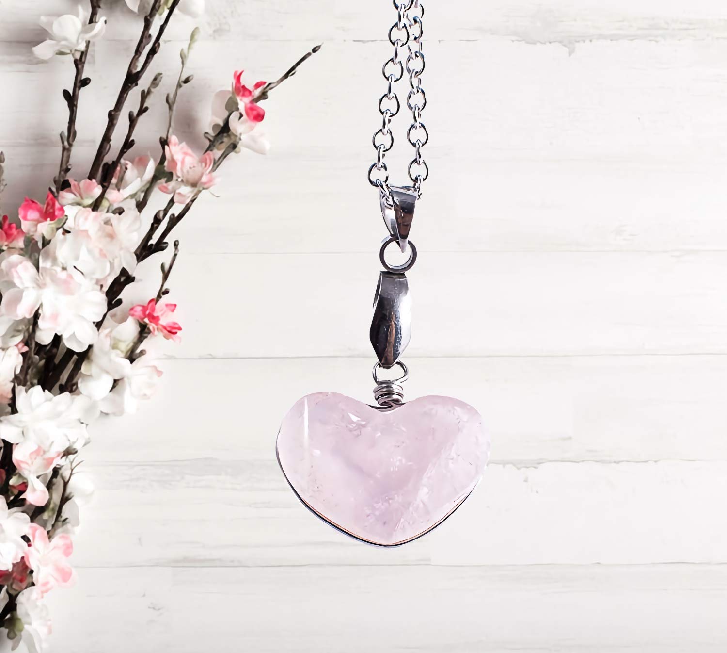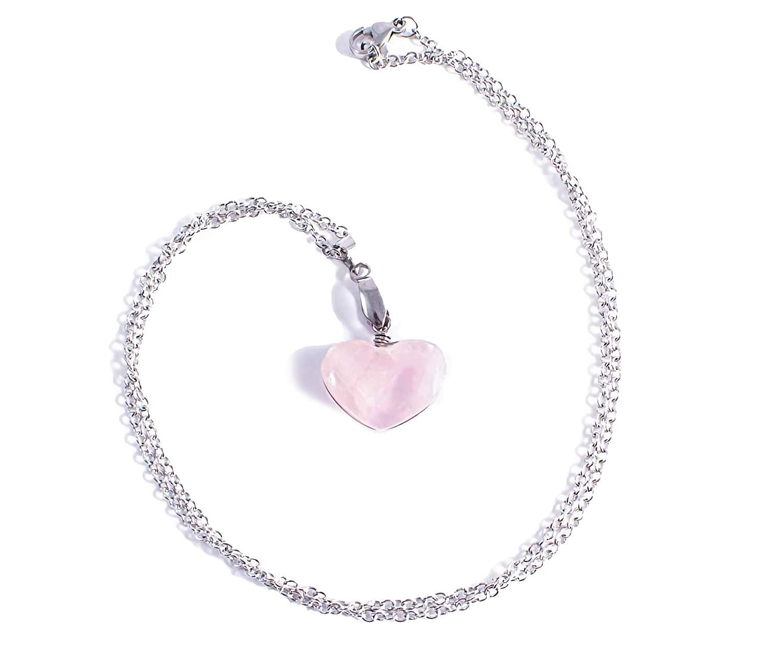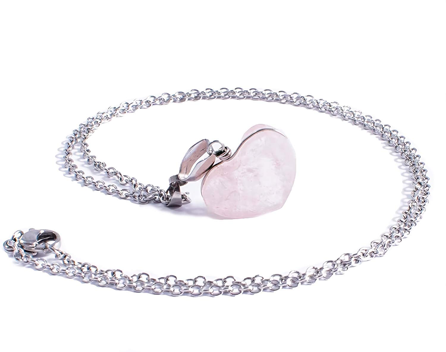 Detalles: El collar de Cuarzo Rosa posee propiedades muy beneficiosas, tanto espirituales como energéticas. Está compuesto por una cadena de acero quirúrgico, indicado especialmente para personas con piel sensible, ya que es un material hipoalergénico. El cuarzo rosa es la piedra del amor incondicional y la paz infinita. Es el mineral más importante para el chacra corazón, ya que enseña la verdadera esencia de amor. Funciona extrayendo suavemente las energías negativas reemplazándolas por vibraciones amorosas. En el plano emocional, el cuarzo rosa es el mejor sanador, libera las penas y las emociones no expresadas, alivia el dolor interiorizado y sana las carencias.