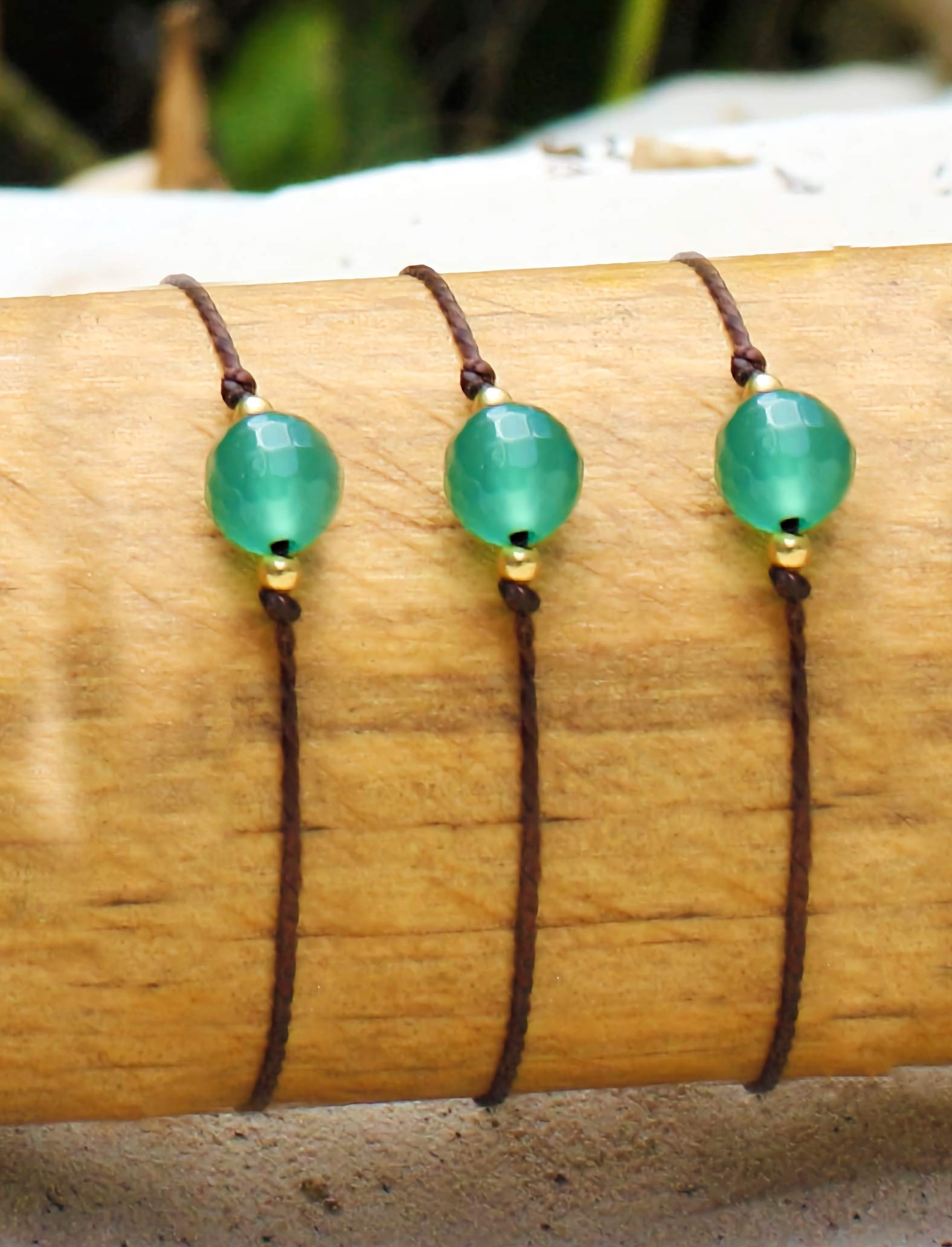 Detalles: Set de 3 pulseras en hilo encerado con una piedra en el centro de Ágata Verde para protección. El Ágata verde: potencia el equilibrio entre emociones y cuerpo físico por lo que se puede decir que es la roca que mejora la espiritualidad y abre nuevos canales de percepción. Un hermoso set ideal para regalos, vienen empacados individualmente para mayor facilidad. Medida de la pulsera: Ajustable le queda a cualquier medida. Contenido del empaque: 3 pulseras iguales de ágata verde. En Libela todos nuestros diseños son hechos a mano de forma artesanal por mujeres mexicanas utilizamos Cuarzos y Piedras semipreciosas obtenidas de diferentes ciudades de Mexico. .