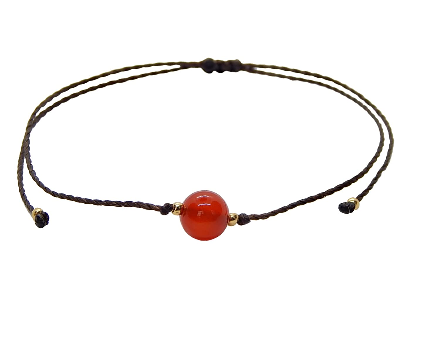 Detalles: Pulsera en Hilo Ajustable con un piedra de Cornalina en el centro para protección Cornalina: estabiliza la energía y aleja los pensamientos negativos.