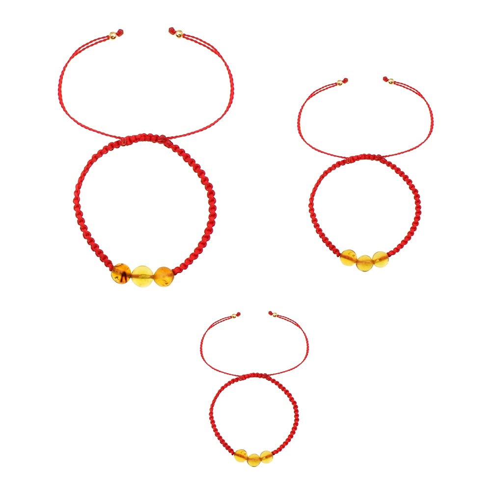 Detalles: Pulsera de hilo rojo con tres piedras de Ámbar natural en el centro.