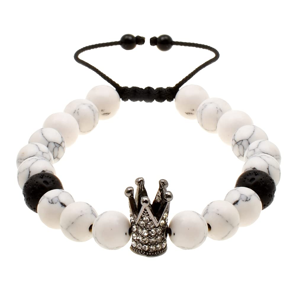 Detalles: Pulseras elaboradas a mano con piedras naturales Howlita blanca y Agata negra. Ajustables con nudo corredizo.